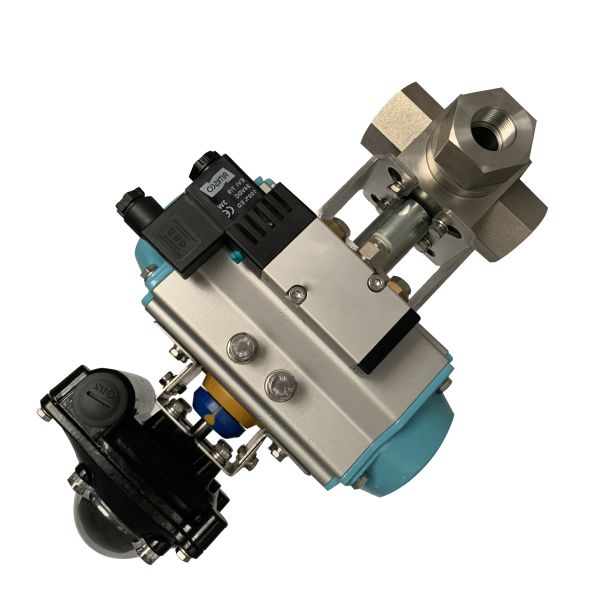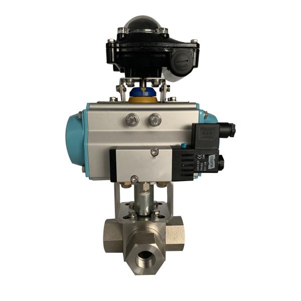 Pneumatic stainless steel high pressure three-way ball valve is connected with internal thread.
